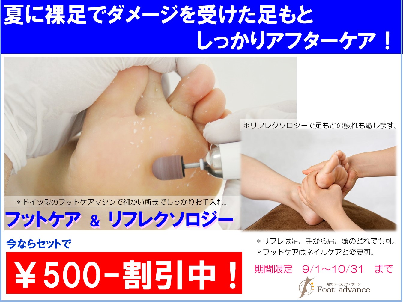 成城学園前駅北口徒歩1分、自由が丘駅南口徒歩1分。リフレクソロジー、フットケア、ネイルケア、巻き爪矯正など足に関することならフットアドバンスへどうぞ。